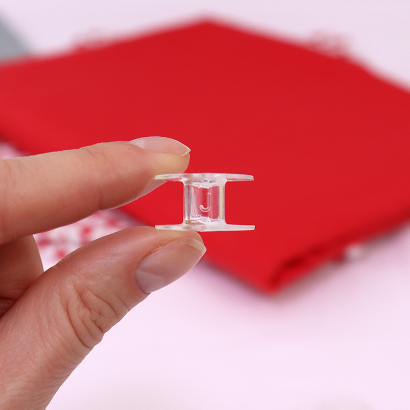 Pudełko z kompletem 25 szpulek płaskich do wieloczynnościowych maszyn do szycia. Posiadają mały otworek, przez który należy przeprowadzić początek nici na starcie szpulowania, dzięki czemu nić od samego początku nawija się na szpulkę równomiernie. Plastikowe szpulki należy stosować we współczesnych maszynach wyposażonych w chwytacz rotacyjny.